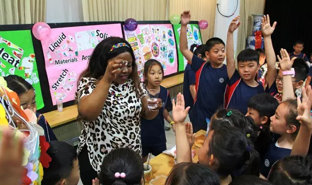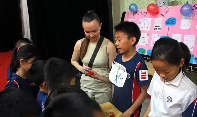 本次科学嘉年华活动,就是学生们对外教科学课的教学成果展示。站台前,学生们和外教老师一起,向其他同学用英文讲述科学知识,利用亲手制作的各种道具和一口流利的英文,形象地描述着天文地理、自然科学。对学生而言,这不仅是一次知识的分享,更是一次口才和胆量的历练。“讲”与“听”的双方,是知识的巩固和汲取,如此对双方都大有裨益。