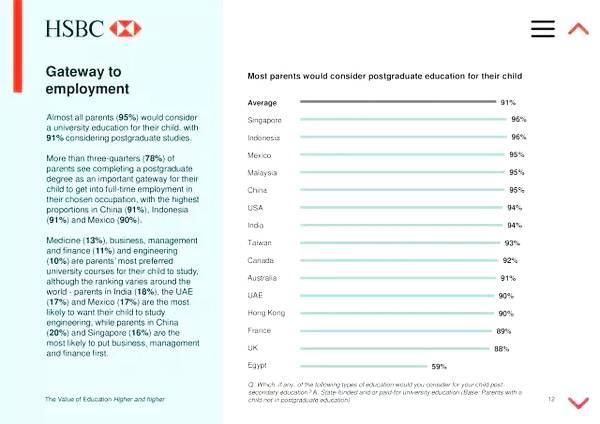 95%的中国家长考虑让孩子读研究生,这个水平高于全球平均值