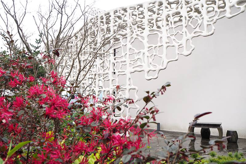 必须要拍照的点就是博物馆的后方看台,白色的网状石雕造景与前方辽阔的景色,仿佛就像是绝佳的画框一般,人一进到画框当中马上就成了一幅美丽的画。