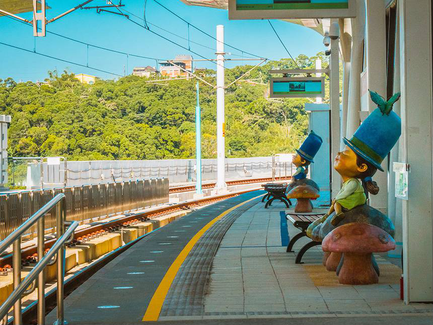 淡海轻轨绿山线特邀台湾知名绘本作家几米,以淡水在地多元文化特色为主题,为车站进行整体公共艺术规划,整条绿山线11个站台都看得到几米的作品。